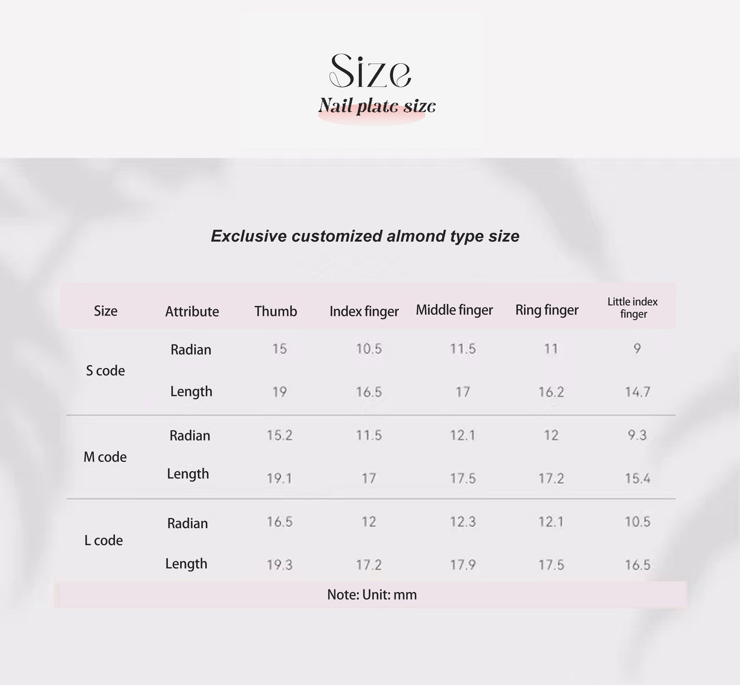1-2mm is normal and does not constitute a quality issue. If the size is slightly larger, a sand strip can be used to make fine adjustments on both sides of the nail plate. The nail plate and arc have standard pro-portions. If there is an incomplete fit, special nails can be communicated with customer service. Nail pieces cannot be trimmed. Please confirm the length before placing an order.